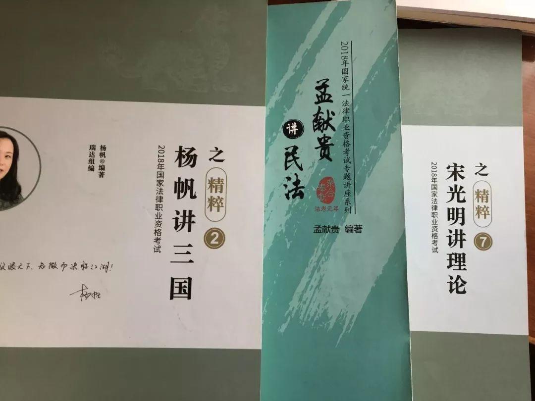第一次司考打下了一些基础,有了第一次司考的经验,选老师和机构也比较慎重,就选了当时刚刚成立的,老师们也都是名师,讲的也不错,用的资料也都是他们的,导学、精讲和精粹三件套以及后期的金题和押题。