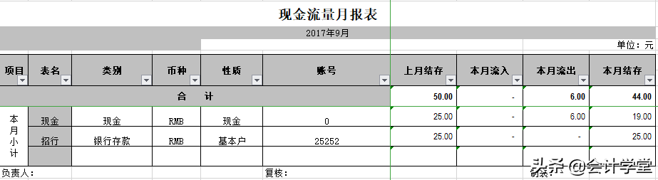 现金流量月报表