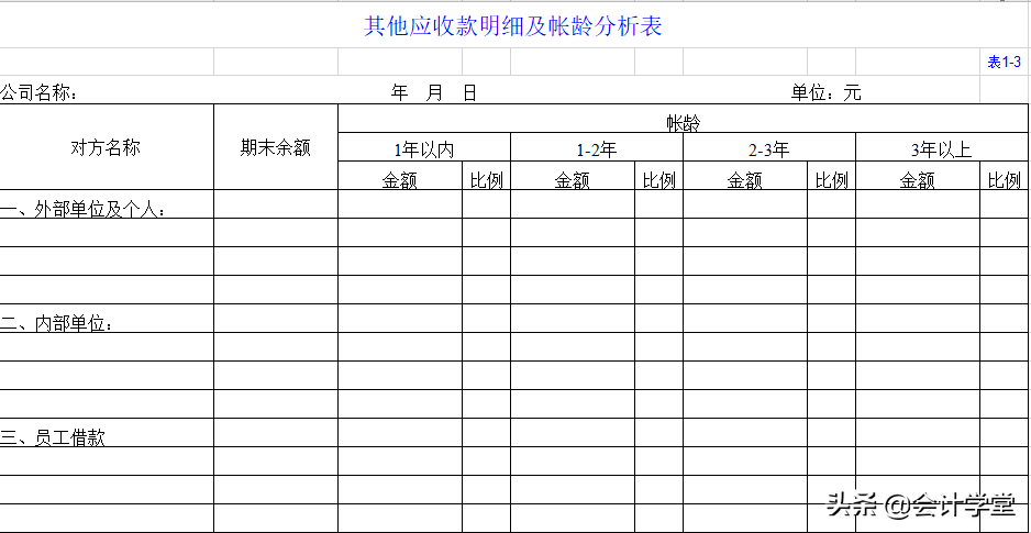 其他应收款明细及账龄分析表