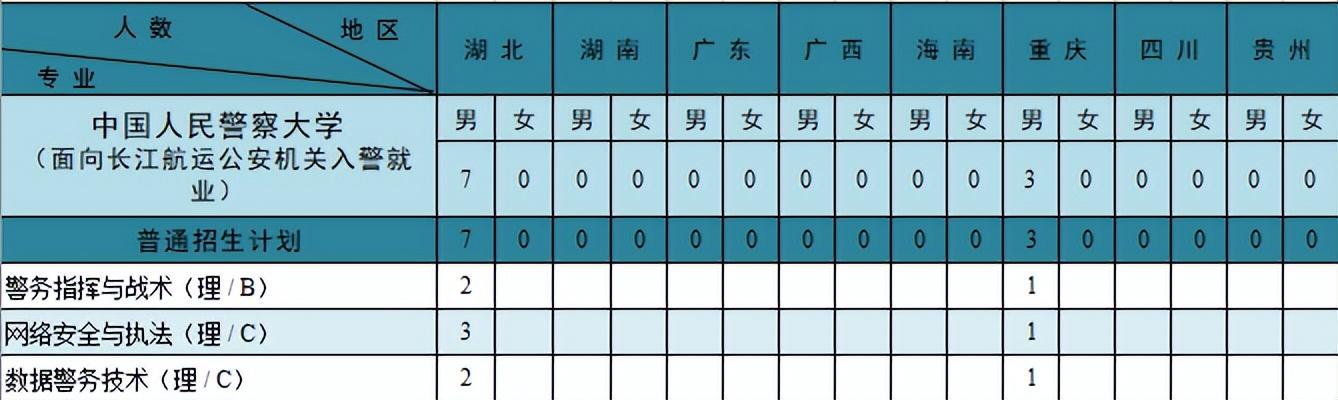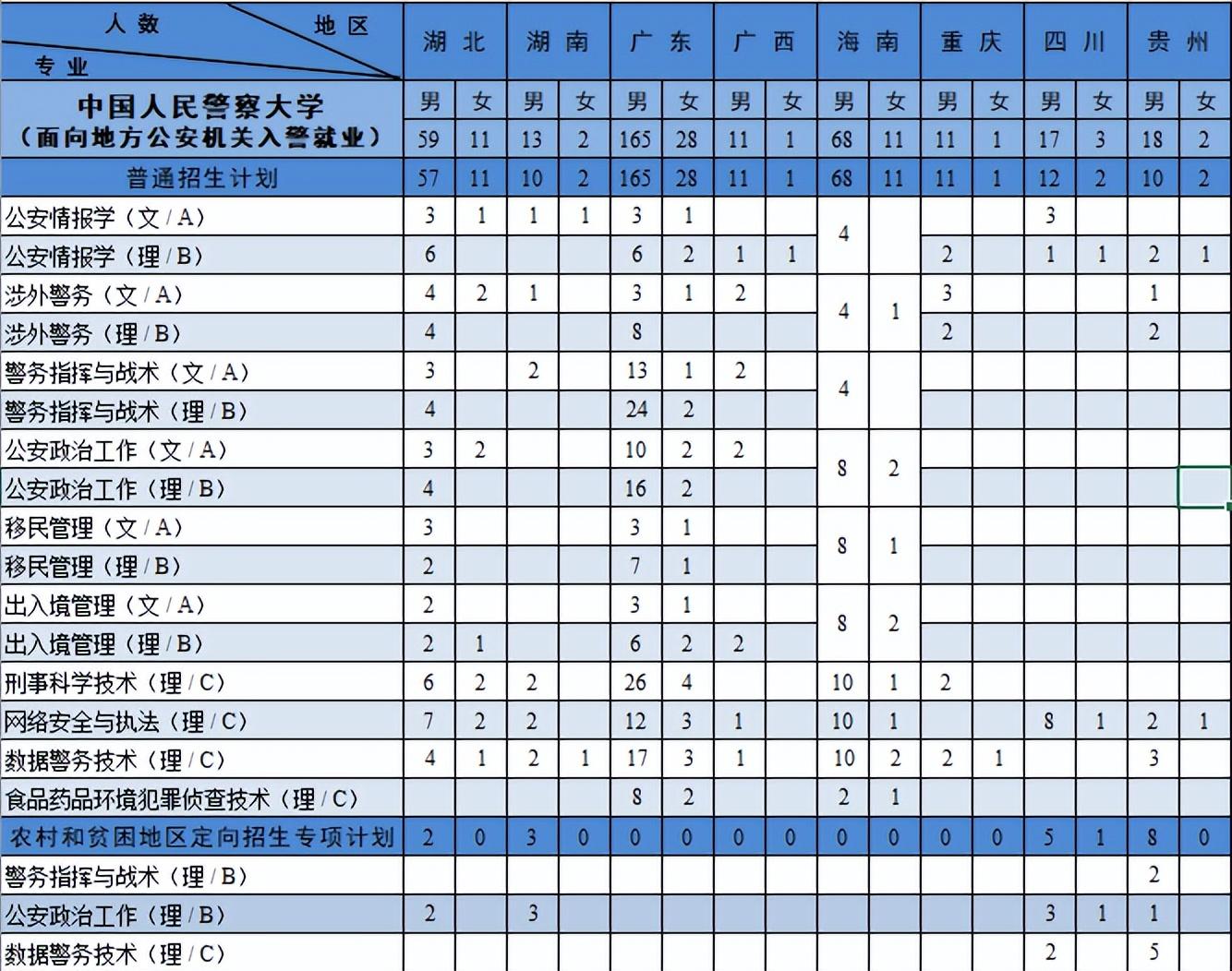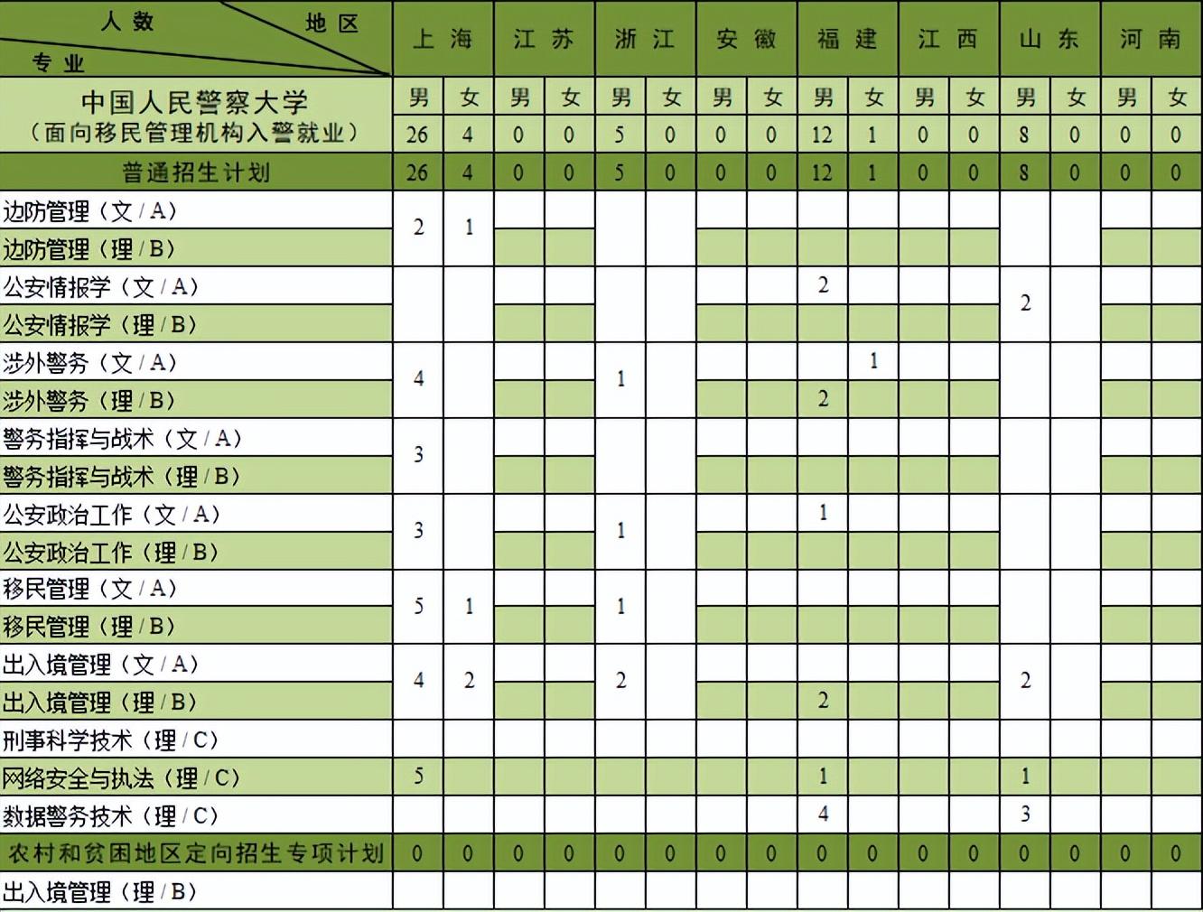 中国人民警察大学2022年本科分省分专业招生来源计划