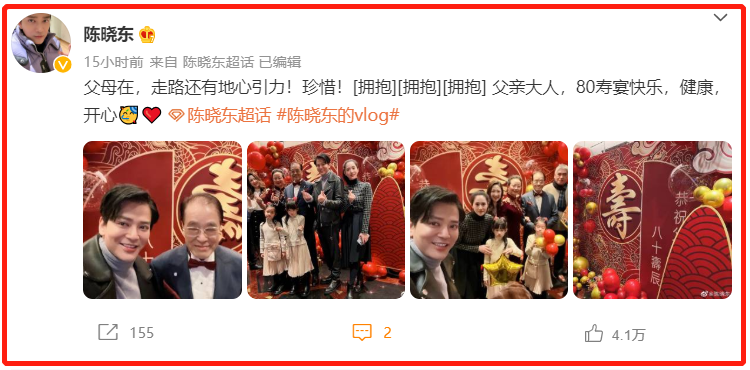 陈晓东全然不在乎周围的亲朋好友是什么表情,嘴巴有没有歪,是不是睁开了眼睛,就连自家女儿也被他忽略,反正只要他自己表情正常、笑得开心就行。