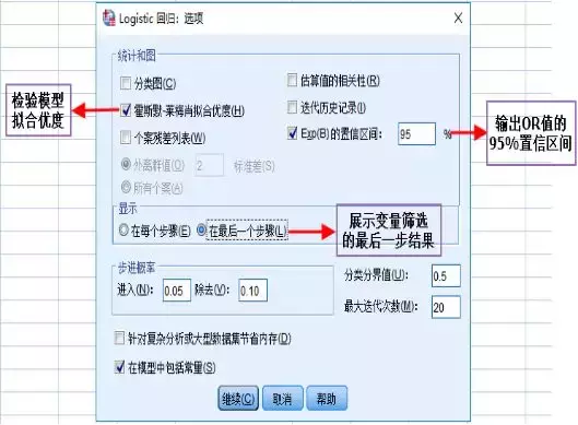 将是否出现症状放入因变量,所有的自变量均放入协变量,方法栏选择输入(不同方法筛选出的变量可能不同),如下图所示: