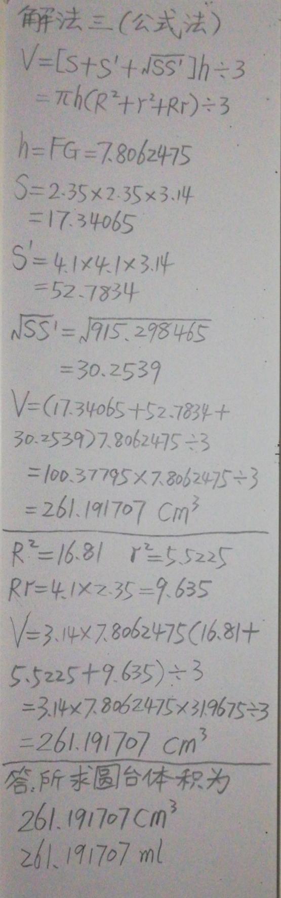 计算圆台体积比较麻烦,希望大家都能坚持到底,过程细心不犯错,一鼓作气取得成功。