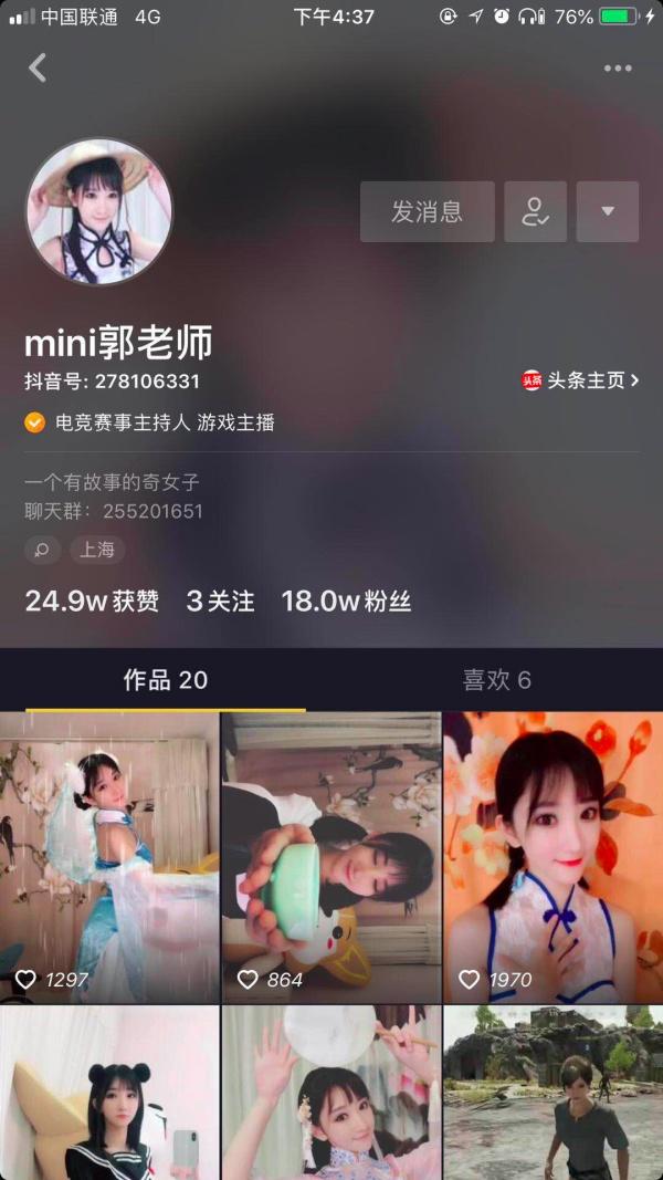 现在郭mini已经回归了大众视野,不过斗鱼没有再给过她任何一个推荐了。上半年去看过一次已经清流的如白水一样的直播间,这风格我不懂,真的不懂。郭mini现在也开始在抖音上做一些小视频的制作,不过大多都是围绕她的本家课程舞蹈进行的。