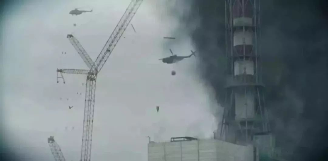 在剧中,一架米-8一上场就坠毁,剧情中的设定是飞行员对侦察飞行的危险性毫不知情,直接飞到了堆芯正上方,穿过浓烟之后视线受阻,撞到了起重机的吊索。
