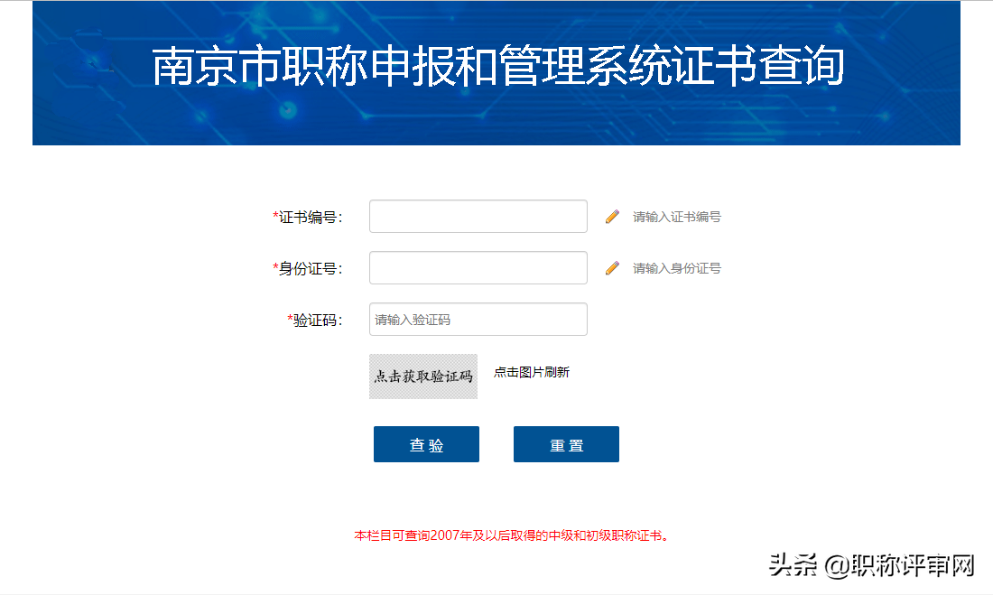 (网址:http://rsj.nanjing.gov.cn/zcrz/index.htm)进行证书信息查询验证。