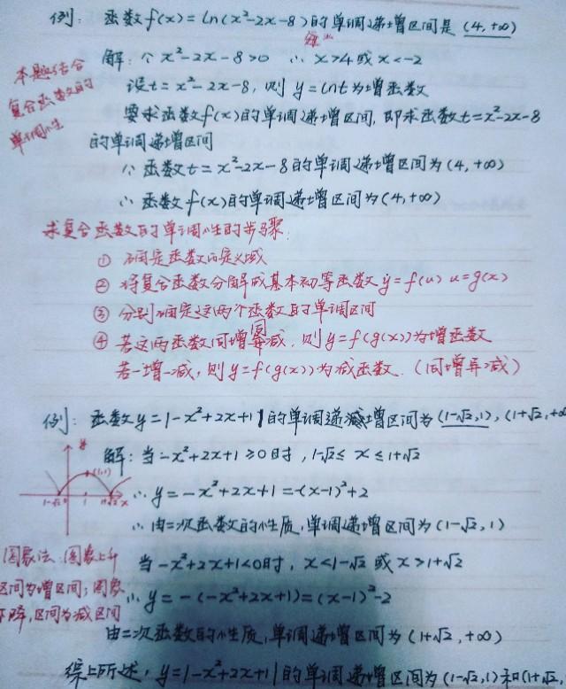 复合函数“同增异减”:这两个简单函数的单调性相同,在这两个函数的复合函数为增函数,这两个简单函数的单调性相反,在这两个函数的复合函数为减函数,简称同增异减。