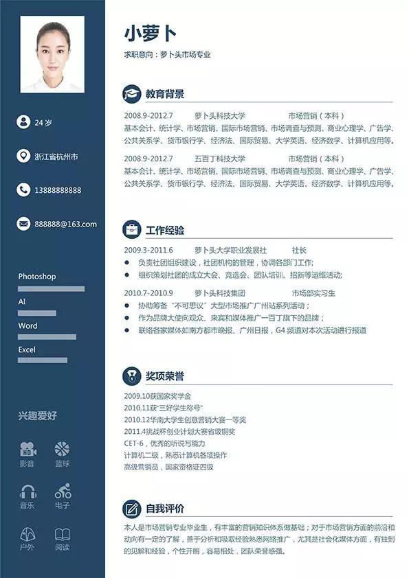 这个问题出现在许多小萌新身上,选择了自己根本驾驭不了的简历模板。