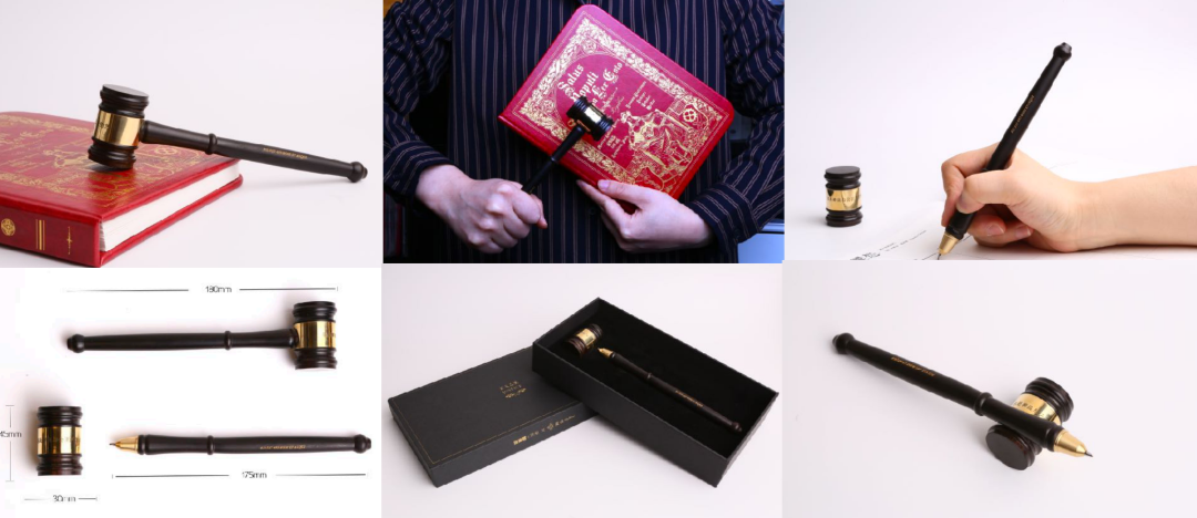一句话推荐:纯天然黑檀木打造,每支都有属于自己的纹理;书写流畅,可使用通用中性笔芯替换;笔身刻有拉丁文 Ius est ars boni et aequi(法是善良与公正的艺术);放置桌面,可摆可用,烫金礼盒包装。