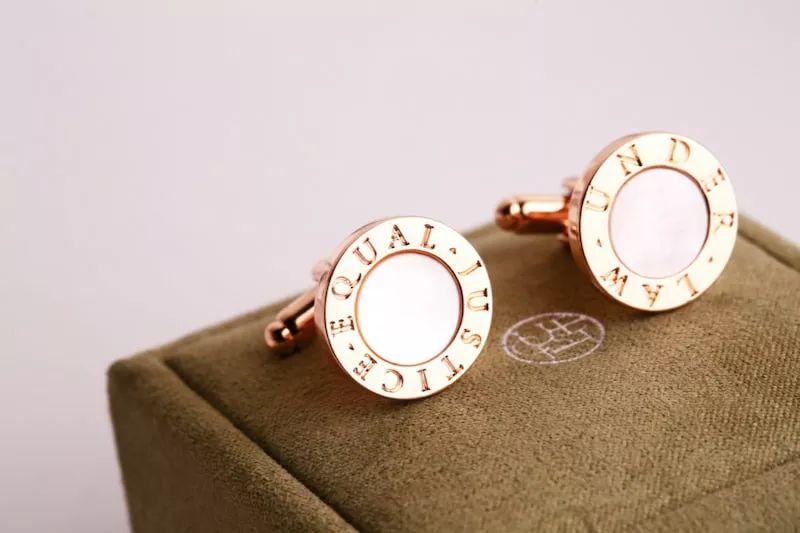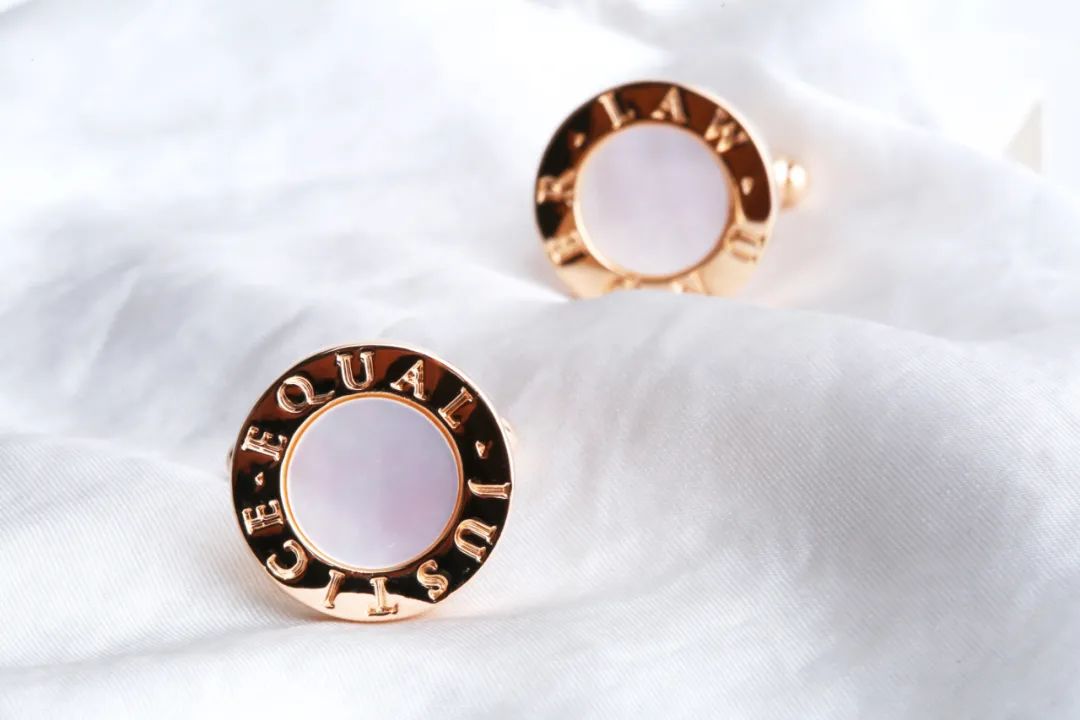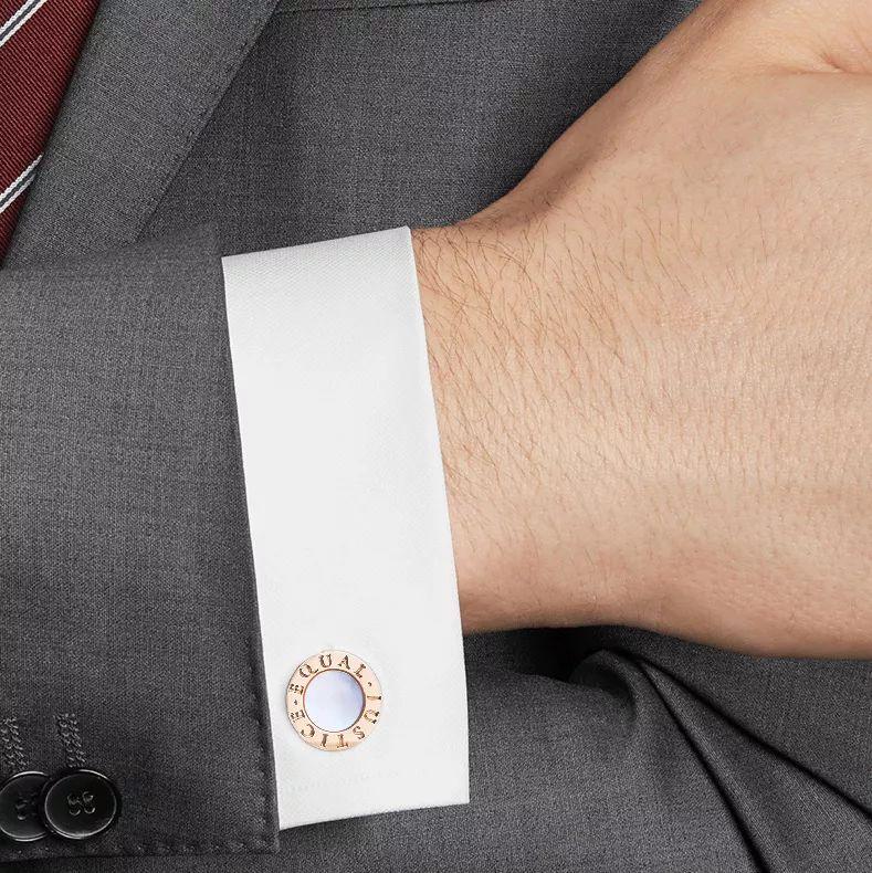 「法律之下人人平等」纯银母贝玫瑰金圆形袖扣