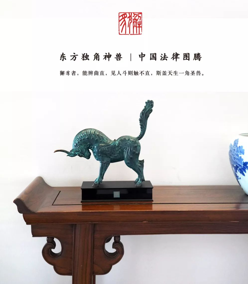 一句话推荐:中国文化中守护公平正义的神兽獬廌。青铜铸件,手工打磨,长32cm、高30cm、宽10cm,摆于厅堂玄关可镇邪守正,摆于书架桌面可观摩赏玩,一款实物之美大大高于图片呈现的法律艺术品。