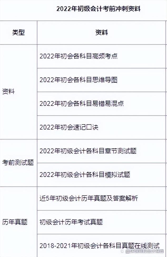 临近考试,小编也给大家整理了很多初级会计的备考资料,例如历年真题、考前冲刺资料等等,需要大家可以及时查漏补缺,具体如下: