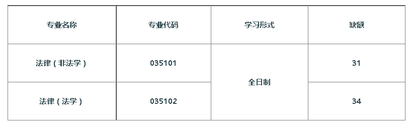 2019年专业调剂缺额,非法学31人,法学34人。