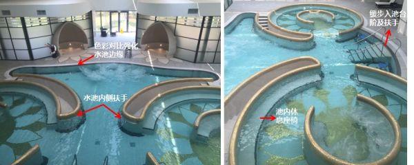 e.泳池内侧设置扶手,便于老人在水中休息时保持平衡。