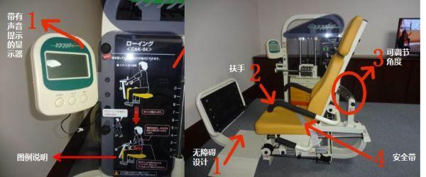 d.设置扶手和安全带。扶手收起时方便老人坐下,放下时起到了运动时保护的作用。