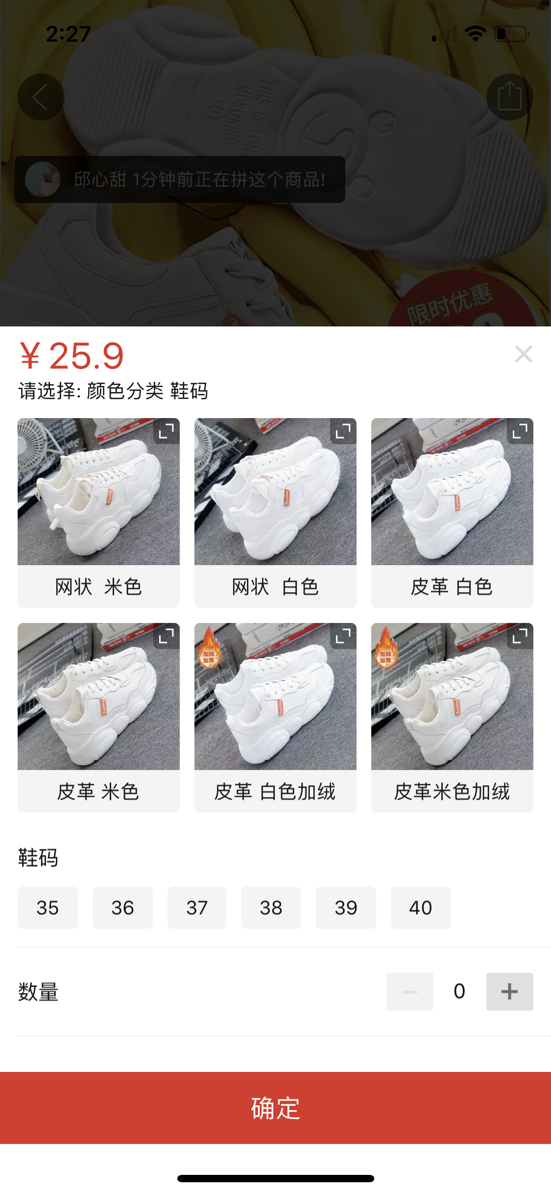 在商品数量及型号选择详情页选择好每个标签—点击确定—跳转到支付页面。
