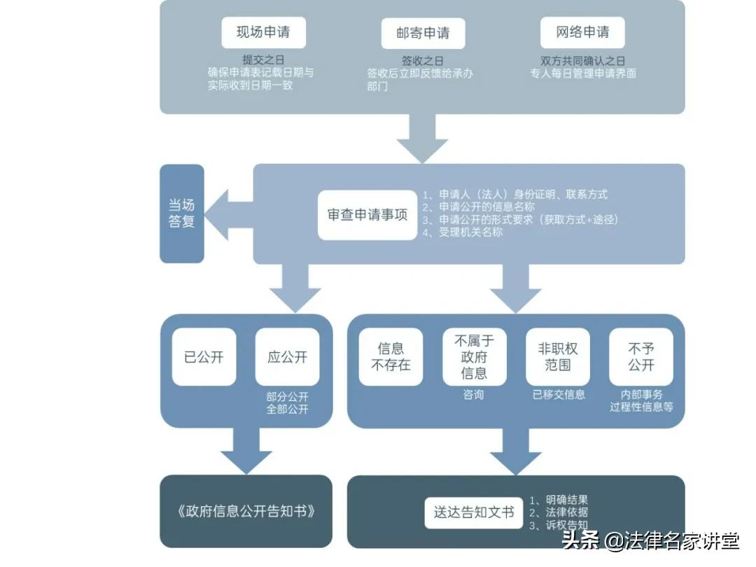 这里以目前时下热点的政府信息公开为例,当政府信息公开逐渐成为公民一项基本权利时,若行政机关能掌握一套专门处理申请人申请事项的工作流程,将能极大地规范行政程序,降低法律风险。