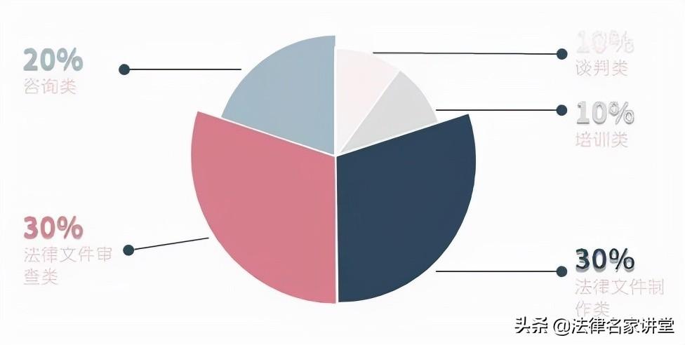 部分律师对于工作报告的体现内容通常是「合同30件、诉讼12件、咨询78件」。这种简单的计数统计应该有,但不应作为汇报的重点,单纯计数无法体现律师的工作价值。工作报告背后的本质是不同的分类标准,这些分类标准渗透着律师的思维能力,在此主要介绍三种常见的工作汇报分类标准。