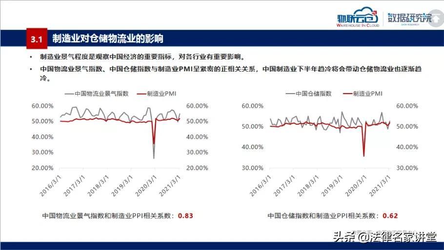宏观(调查行业):该企业所隶属的行业为仓储物流行业,通过洞见研报与中国裁判文书网对于「仓储」「物流」等关键词进行检索。我们发现从行业趋势上,仓储物流行业与制造业呈正相关,下半年受制造业持续低迷影响,仓储物流将呈现下降趋势。由此,我们了解到该行业未来可能出现经济下滑趋势(行业经济效益下降,可能导致价格敏感度提高,法律服务的报价应更为实惠)。