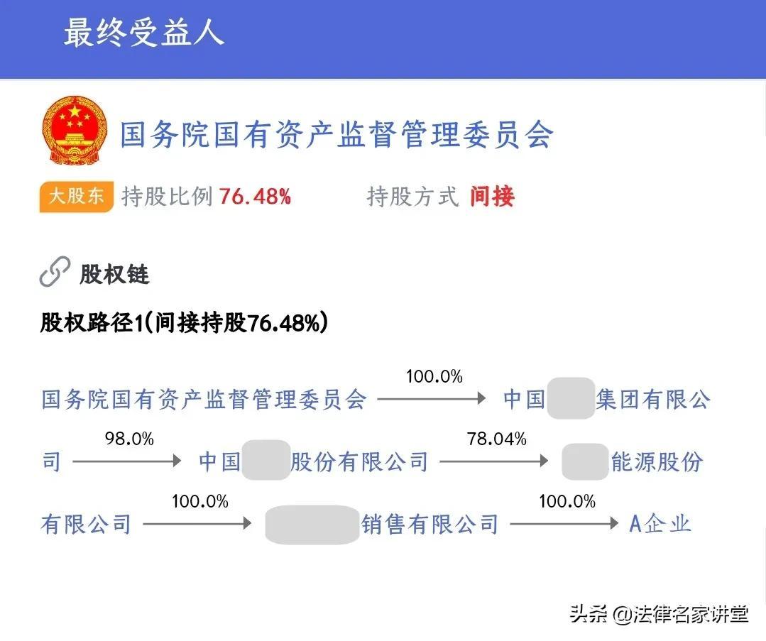 中观(调查企业):在完成对A企业所属行业调查后,我们继续对A企业进行穿透式调查,得知A企业最终收益人为国资委,在为其提供服务时要充分意识到作为国有企业应遵守的相关规范,还有各关联公司的实际业务往来与风险。