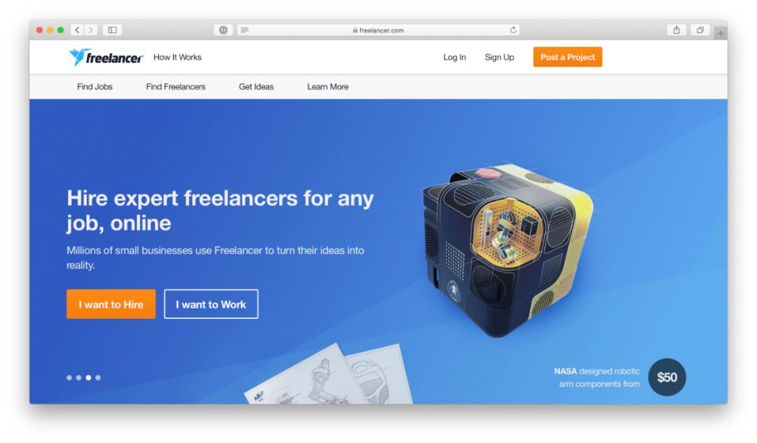 排在首位的 freelancer,目前是全球影响力最大的自由职业与众包平台,公司创办于 2010 年,总部位于澳大利亚悉尼,员工遍布 240+ 个国家,拥有 4000+ 万的雇主与自由职业者。从软件设计、开发、测试到营销、会计、法律服务,你都能在上面找到对应的合作方,其业务覆盖范围不可谓不广。