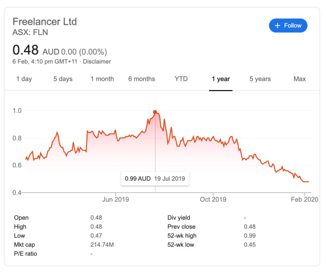 不过,作为上市公司的 freelancer,近半年的公司股价却在持续走低... 具体原因在此就不多做分析了,毕竟 GitHubDaily 公众号不是荐股平台。