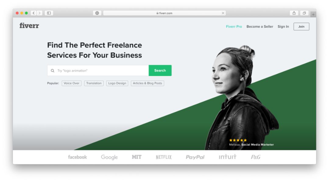 同 freelancer 一样,Fiverr 也创建于 2010 年,不同的是,该公司经营业务较小,主打写作、翻译、图形设计、视频剪辑、软件编程。