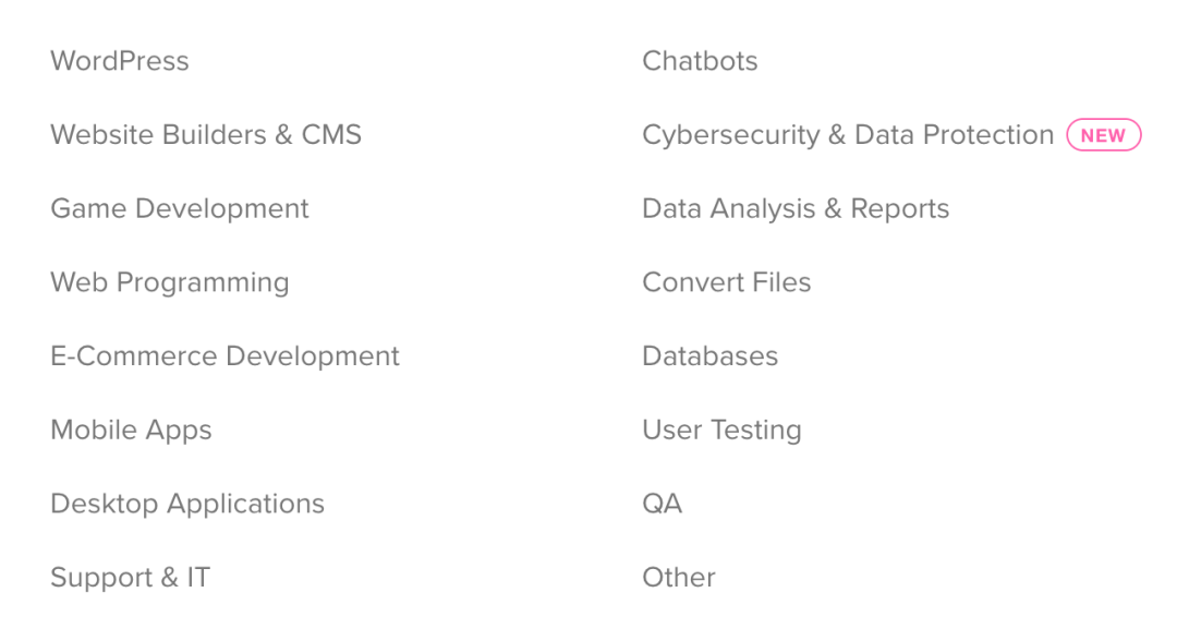 虽说 Fiverr 的服务范围并不是特别广,但是他们家对软件编程这一块领域,划分的倒是颇为详细: