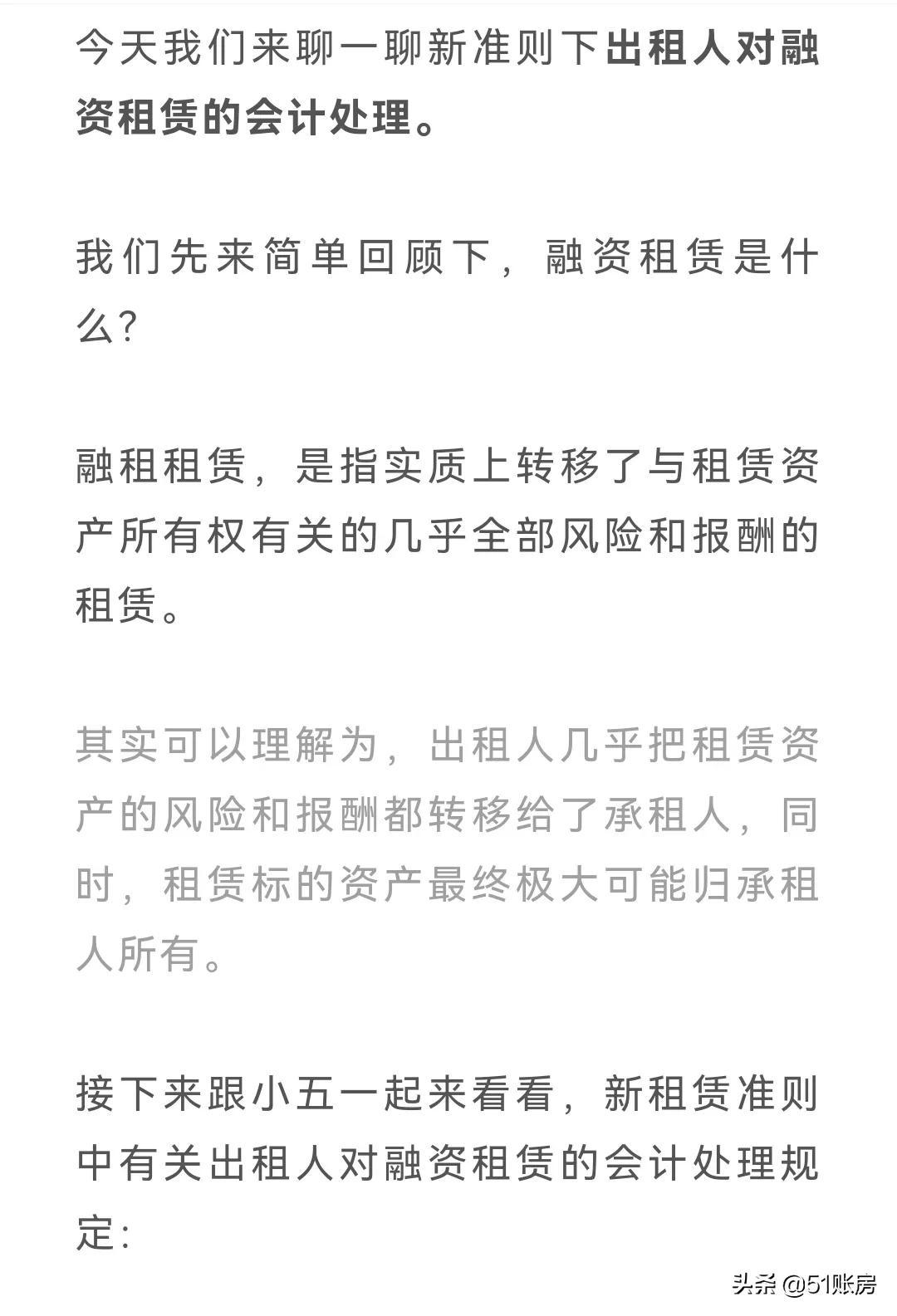 上一篇我们讲了出租人租赁的分类、以及出租人对经营租赁的会计处理。
