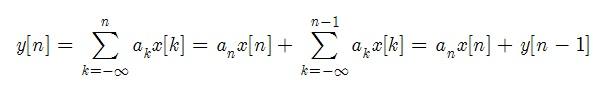 先来看一个最简单的系统:y[n]=x[n]。吃啥吐啥,没含量吧,直通型。复杂一点:y[n]=x[n-1]+x[n]。系统的输出跟当刻的输入和前一刻的输入有关。