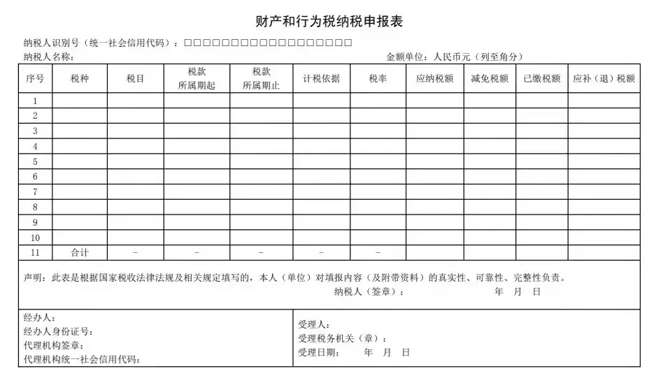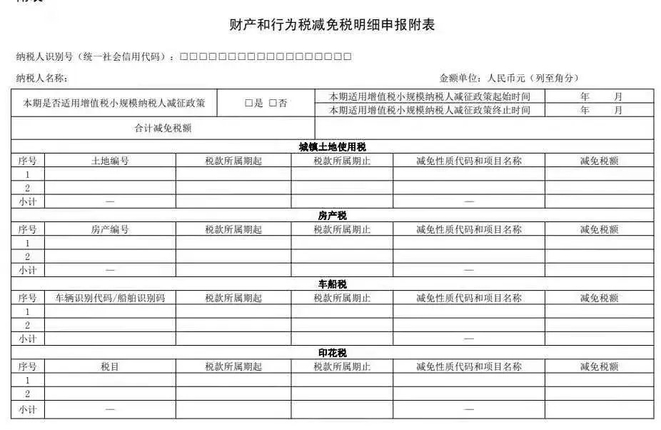 如下图所示,《财产和行为税纳税申报表》由一张主表和一张减免税附表组成。