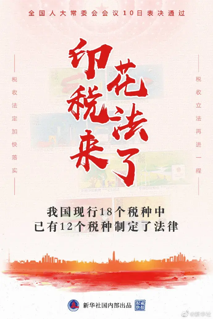 定了!印花税立法了!十三届全国人大常委会第二十九次会议10日表决通过了印花税法!
