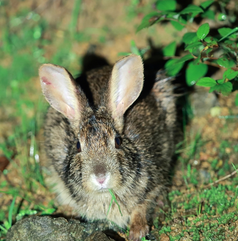 华南兔,也就是华南地区最常见的一种野兔。兔子其实有很多种类,但最常见的可以分为两个属,一个是兔属,一个是穴兔属。华南兔就是兔科、兔属的动物,这是中国本土的兔子。而我们常见的家兔其实属于穴兔属,所以那些大白兔其实不是我们本土的兔子,而是属于外来物种。