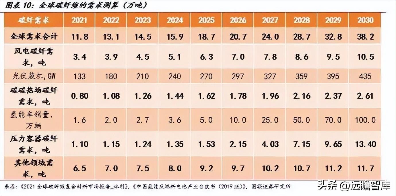 能源变革浪潮下,光伏产业快速发展,氢燃料电池也在蓄势待发,这些新兴产业同样带动碳纤维需求的大幅扩张。