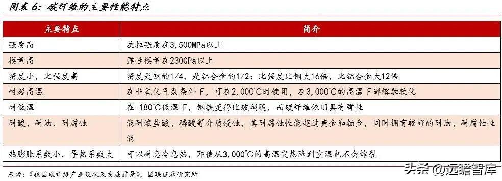 碳纤维是由聚丙烯腈,或沥青、粘胶等有机纤维在高温环境下裂解碳化形成的含碳量高于90%的碳主链结构无机纤维,具备出色的力学性能和化学稳定性,具有质轻、高强度、高模量、导电、导热、耐腐蚀、耐疲劳、耐高温、膨胀系数小等一系列其他材料所不可替代的优良性能。