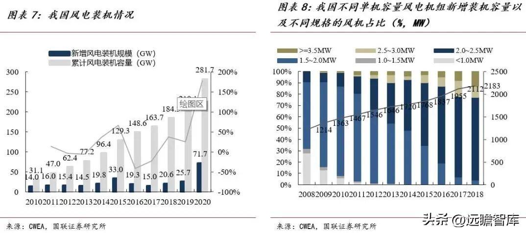 全球“十四五”期间风电装机复合增速超过25%。风电行业在经历了 2020 年抢装潮之后, 2021 年在国家的碳中和政策背景下仍维持了高景气度,2022 年中央补贴全面退坡,我们预计大型化海上风电装机和降本后陆上风电需求将持续支持新增装机量增长,2025年全球风电新增装机容量将达94GW,中国达到45GW,占全球新增装机量的 47%。