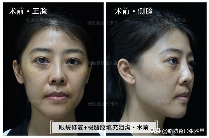 在其术后,可能是脂肪祛除量过多,不但自己的眼部下方严重凹陷,同时右眼的内眼角出现了一个凸出的结节异物,从侧面看去,那里更是显得凹凸不平。