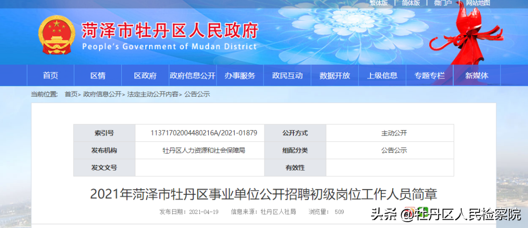 牡丹区事业单位公开招聘工作人员简章及其他公告均在牡丹区人民政府网站(http://www.mudan.gov.cn/)发布,请报考人员务必登陆准确的网站查询相关信息,报名时所留电话保持畅通,以免影响报考。因本人原因错过重要信息而影响考试聘用的,责任自负。