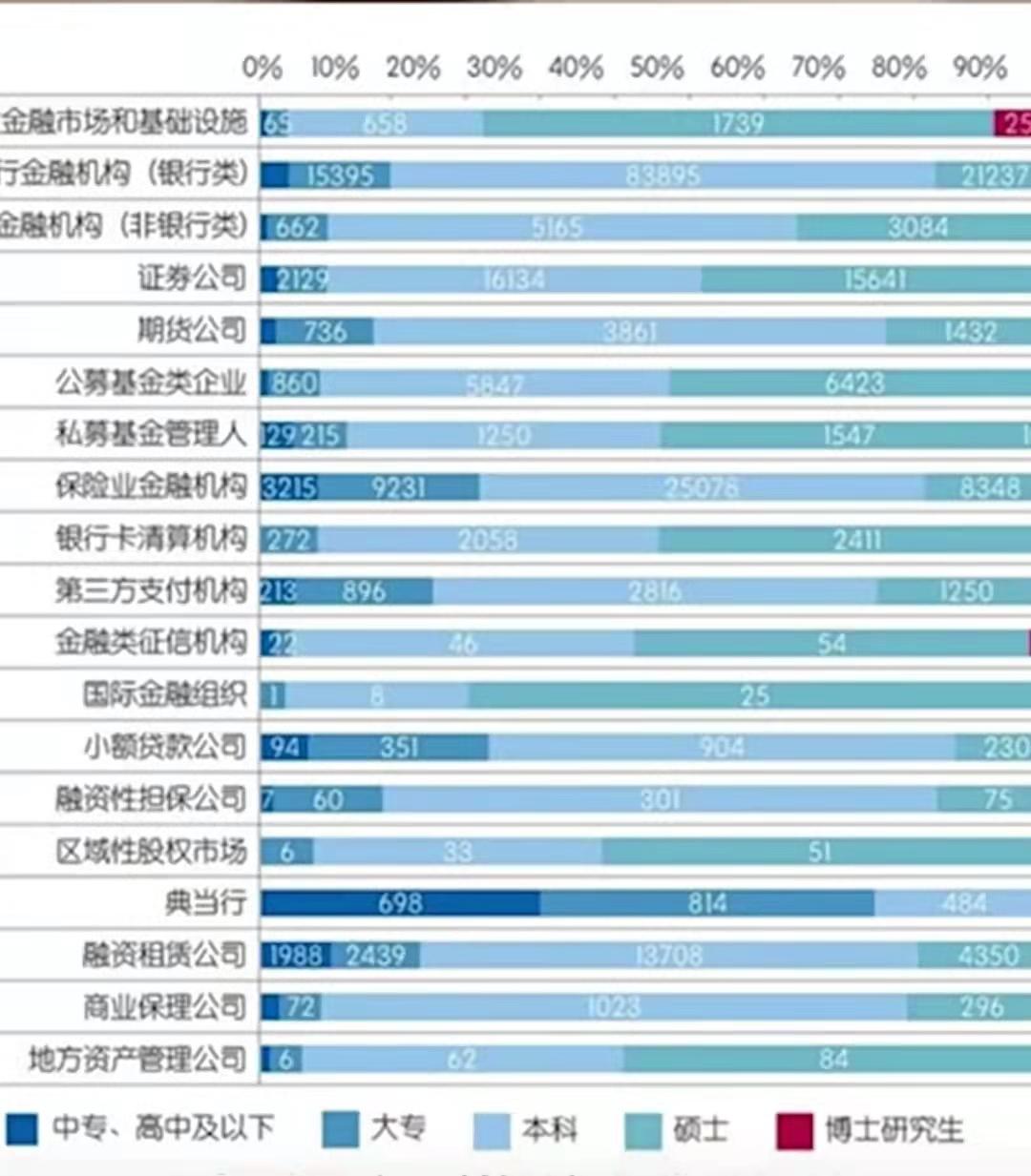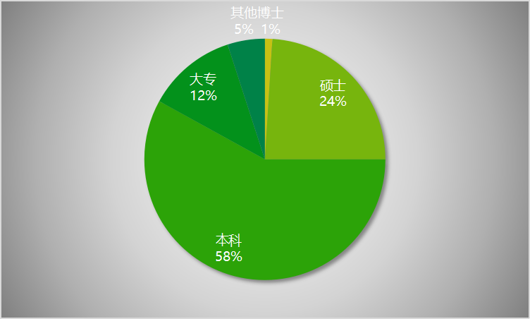 可以看出总体硕士生的比例还是非常高!本科及以上学历占50%以上。所以想做金融,要好好读书!