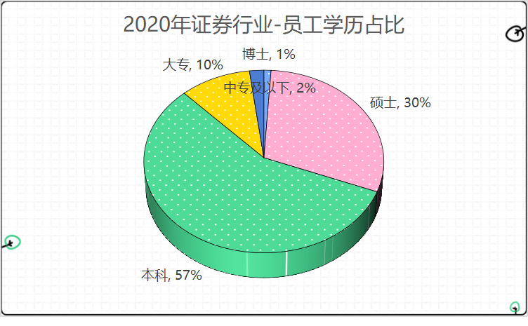 1、券商:也就是投行,该岗位非常多,包括投行、研究员还有前中后台等等。我们先来看证券行业,证券行业本科占大多数,研究生占三分之一。