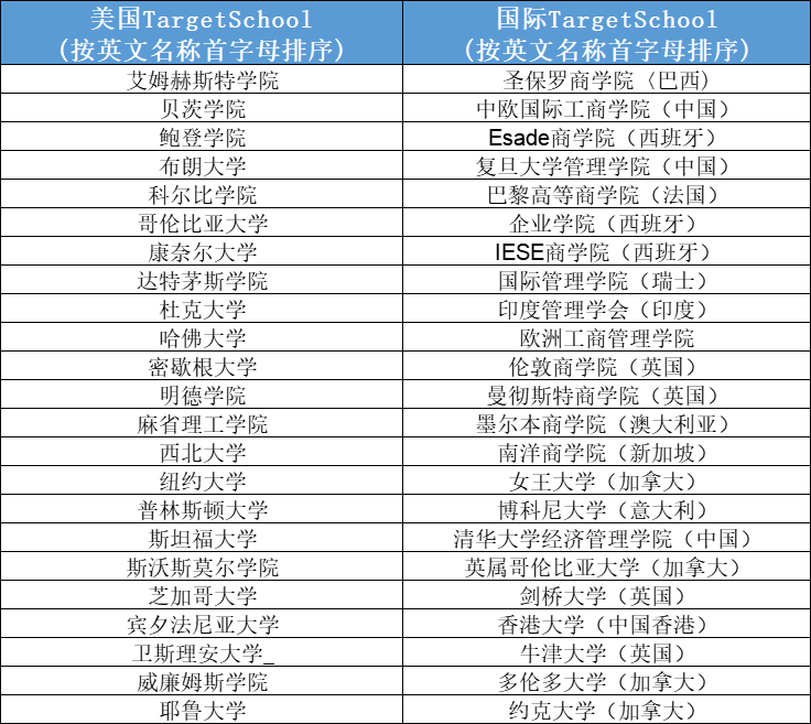 有个最受金融行业欢迎的学校列表,所谓的Target School,供大家参考!