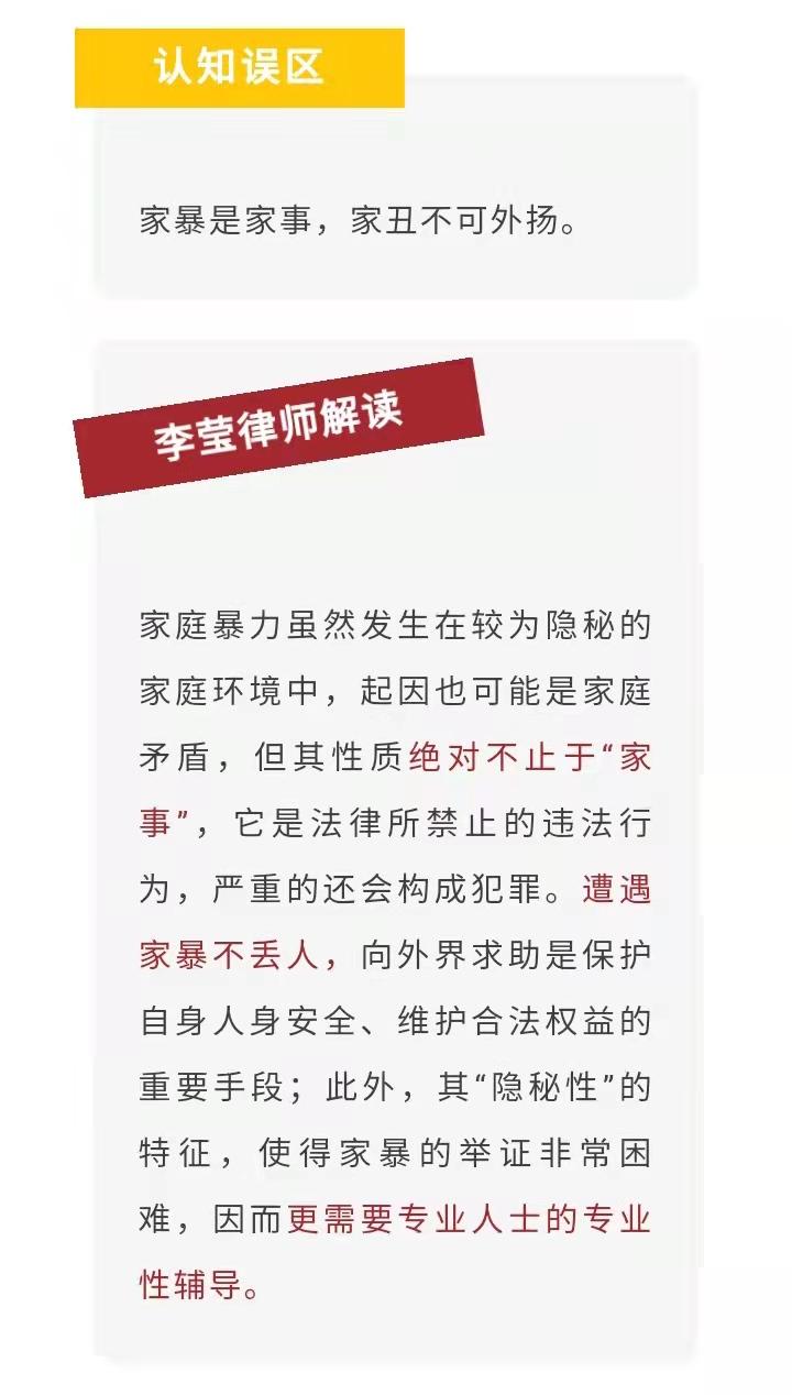 家庭暴力不是家务事,是违法行为,全社会都应该对家庭暴力零容忍达成共识。作为受害人,在家暴发生的那一刻,要有明确的否定态度,一定要明确地对家庭暴力说不!