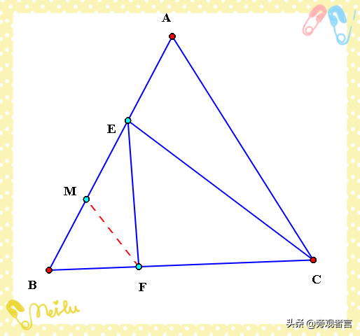 ∠B=60°,△BMF是等边三角形,∠BMF=∠BFM=60°,∠MEF=∠MFE=30°。