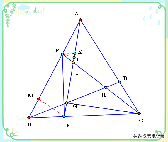 作图:过E点作EK//BC,交AF于K;过E点作EL垂直于AF,交AF于L;过F点作FM垂直于AB,交AB于M。