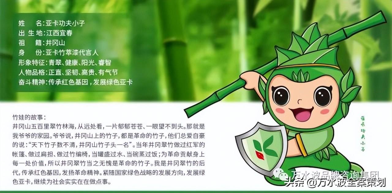 而在超级符号的选择上,团队大胆地采用了IP形象,结合了“竹子”、“抑菌盾牌”、“中国功夫”和“中国元素”,打造拟人“竹娃”形象——亚卡功夫小子,来作为亚卡品牌的代言人和今后传播中的超级符号。