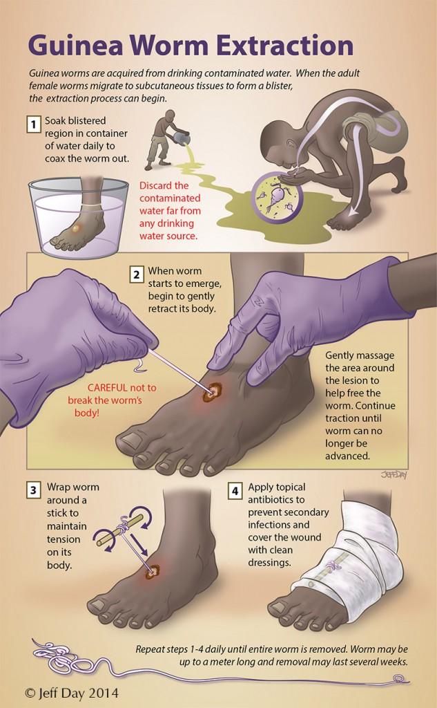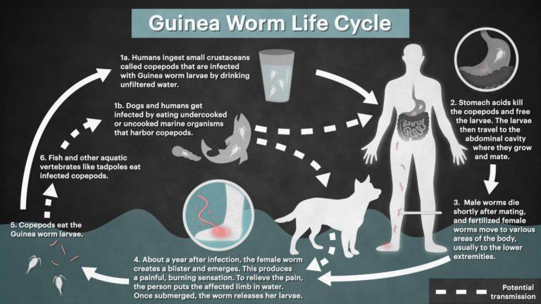 因为人类比较容易管理,就算是生猛的非洲人,对这种恐怖的寄生虫也是怕得很,而这种寄生虫可怕的生殖过程也是其即将被消灭的关键,但狗以及猫却无法控制,它们会在线虫所在水域喝水,可能食用被线虫感染的鱼类,还有食用市场上被丢弃的死鱼烂虾等。