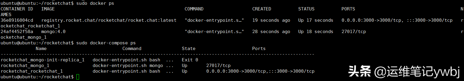 #创建一个目录mkdir rocketchat#进入目录cd rocketchat#获取官方docker-compose.yml文件curl -L https://go.rocket.chat/i/docker-compose.yml -O以下是获取到的官方docker-compose.yml,默认端口3000,使用mongo数据库,根据自己需求更改。