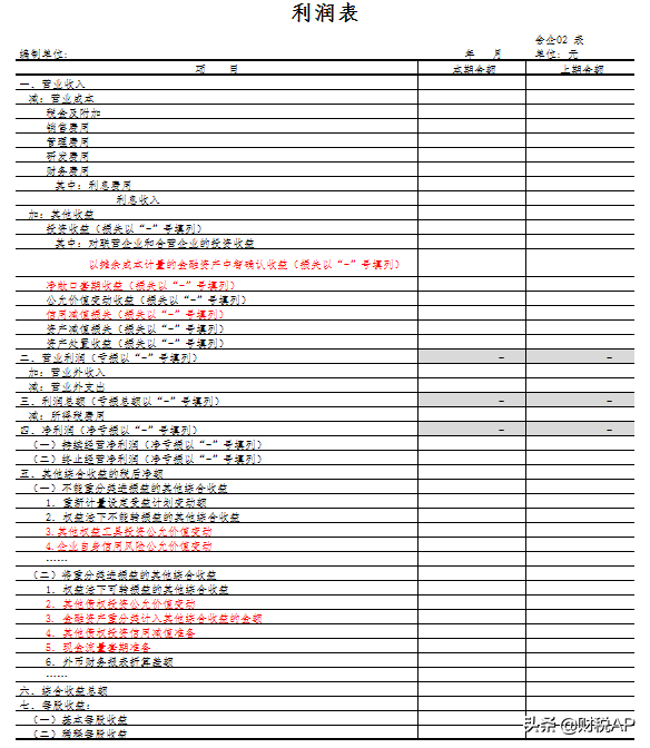 2.适用未执行新准则企业(红色部分为独有)