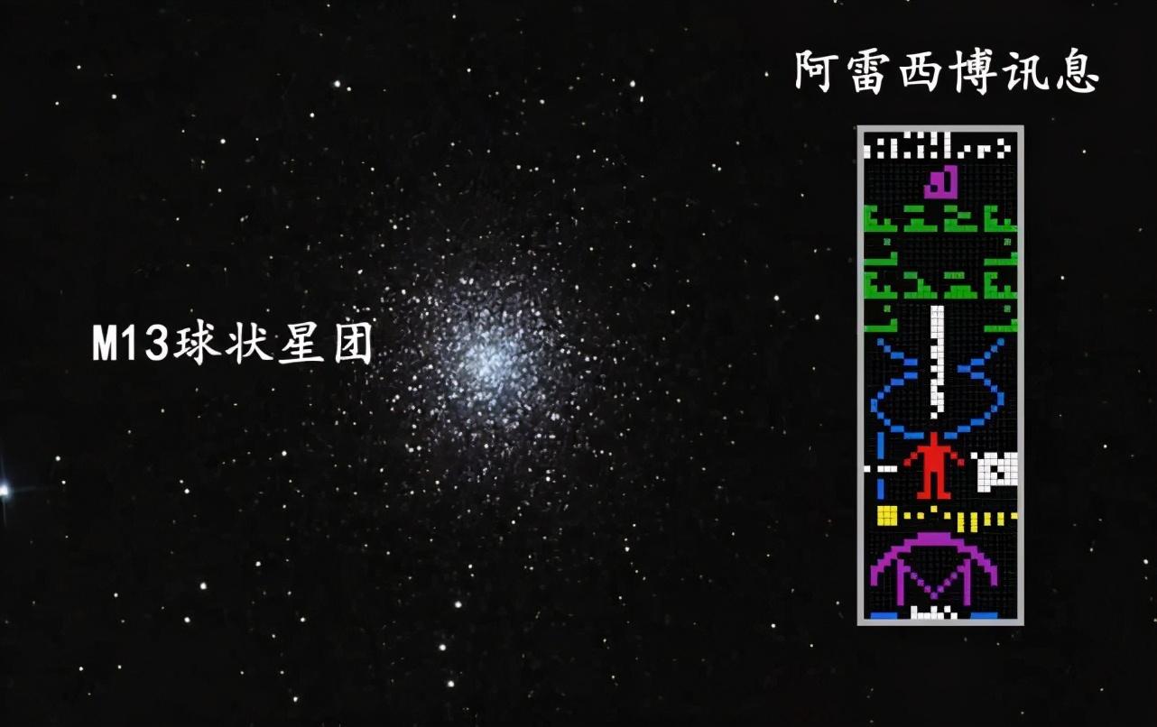 1974年,科学家们值阿雷西博望远镜改造完毕之际,向2.5万光年外一个恒星密集的地方——M13星云,发射了代表人类文明的信息——阿雷西博望信息,持续了三分钟的时间。