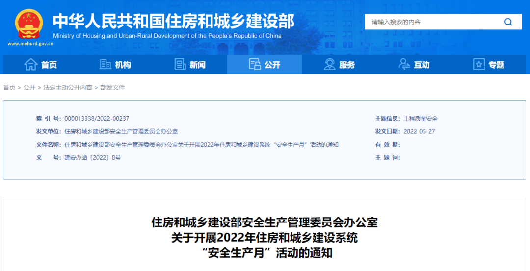 今年6月是第21个全国“安全生产月”,住房和城乡建设部安全生产管理委员会发出通知,要求各地主管部门及有关单位督促工程参建各方严格落实重大事故隐患排查治理主体责任,主动研判风险、排查隐患。来自各级部门的监管对于工程建筑领域将会成为常态。